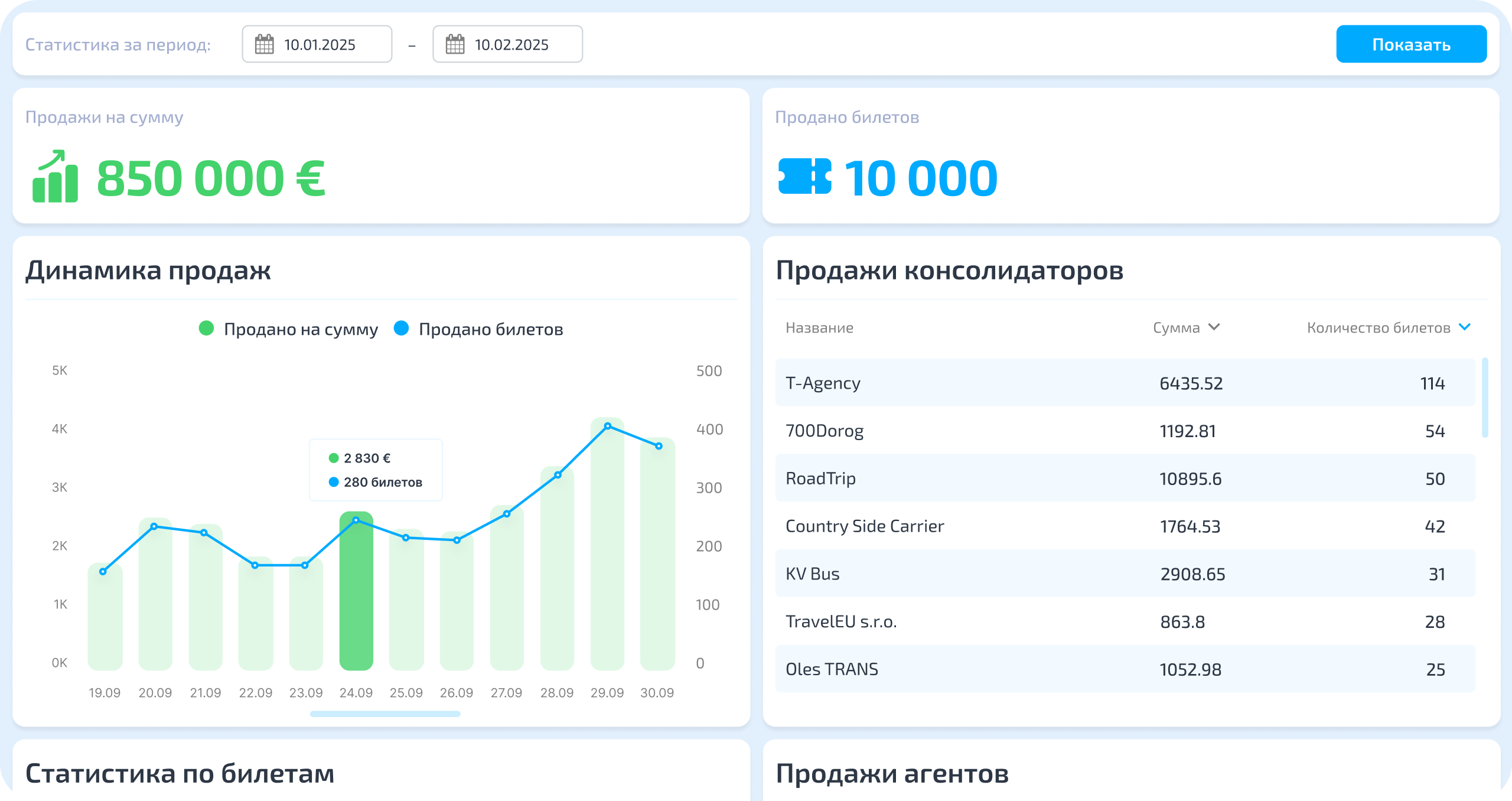 Прозрачность всех операций, быстрое внедрение модулей расписания, ценообразования и отчётности. API для агентов сократил ручную работу и овербукинг, Driver App для водителей обеспечил посадку пассажиров в реальном времени. Продажи централизованы, отчетность быстрая, пассажиры бронируют, отменяют и получают поддержку через брендированные веб и мобильные приложения.